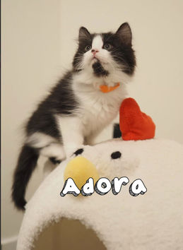 Adora是一只安静独立活泼的小猫咪。到家之后大概需要一天时间适应环境。对食物不挑剔,现阶段偏爱罐头,也会吃一些干粮,但是没有吃罐头那么积极。会使用猫砂盆。人类陪伴玩耍的时候会非常积极主动,逗猫棒玩到停不下来,但是没有人类的时候也会自己玩,不会闹出太大动静。会使用猫砂盆。和Catra是好朋友,会在一起玩耍。