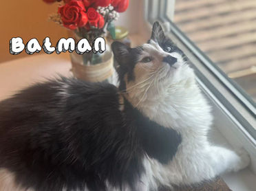 Batman 是一隻情緒穩定、超級親人的小社牛,對新環境零適應期,像回到自己家般自在。脾氣溫和,對人友好,也能與其他動物和平相處。吃飯乖巧,餓了會主動撒嬌要吃,是名副其實的小饞貓。因為是長毛貓,需要定期梳理毛髮保持美麗。