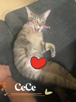 CeCe is a gentle and playful girl. She loves your cuddles and pettings very much. She likes staying and sleeping with you. She’ll quickly become a purring machine once being familiar with you. She has a good hygiene habit and she’s litter-box trained. CeCe is not picky about food and she can get along well with other cats.