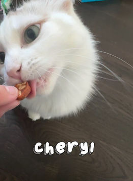 Cheryl 性情温和,懂得用猫砂,不挑食,与其他貓,會先禮貌保持距離,她像一只带来好运的精灵,用温柔的陪伴,为生活增添一份宁静与柔光。