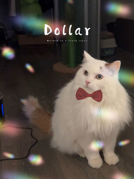 Dollar是一只黏人的大貓,体型和性格反差极大。刚到家时会害怕的躲到床底,並且抗拒与过于活泼的宠物或人相处。但是只用熟悉两天,你就会在清晨或者晚上感受到他趴在你的身上的重量。你的肚子会是他最喜欢躺的地方。熟悉环境的Dollar每天会安静的在家里巡视,然后找个舒服的地方躺下,不会到处攀爬或者乱吃东西,是个很文静的男孩子。他也有黏人的一面,平常不会乱叫,但是如果太久没人陪他就会撒娇的叫你,只要一伸手就会拿头使劲使劲蹭你。他很爱干净,会使用猫砂盆,经常会给自己梳毛,也很爱喝水,总是喝的自己大围脖上湿答答的。吃饭方面不挑食,肠胃不错,虽然吃得不少但也不会暴饮暴食。比较小的胆子,无论是家里来谁都会先躲起来然后再慢慢出来观察。不喜欢和别的宠物生活,会让他感觉不自由,會因此常常躲在床底。由于体型较大且毛长,日常需要细心打理,让毛发顺滑,防止不断打结。