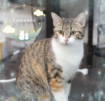 Jalapeno is a stunningly beautiful calico-tabby mix who is incredibly affectionate and clingy. She adapts quickly and loves being close to people, but she prefers not to be confined. Though she’s clean and quiet, she doesn't get along well with other cats and may show a bit of a temper when anxious.