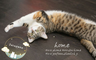 Jalapeno是一只非常非常漂亮的彩狸三花,非常非常粘人。我是一只适应非常快的小猫,刚到家就可以给人摸摸,我超级喜欢撒娇,会跟你翻肚子~我平常很粘人,喜欢长在人身上,会打呼噜和踩奶,也会用头蹭你。我没有任何不良好的习惯,晚上也非常非常安静,我什么都喜欢吃,也很爱干净。但是请不要把我关起来,我会抱怨,请让给我跟人生活在一起~