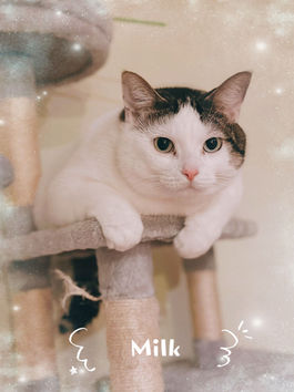 Milk is a very sweet and shy boy. He is a very independent cat but also enjoy cuddly with you. He is a chubby boy that need weight control. His eye sometimes red but usually due to stress, not medical concern so far.