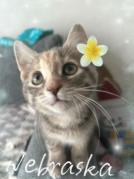 Nebraska is a super lively and affectionate girl. She loves your cuddles and pettings on her head. She enjoys playing with you and sometime love bite. She’s not picky about food and litter-box trained. She can get along well with other cats or dogs.