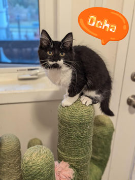 Ocha is an affectionate and lively girl. She can get along well with other cats. She starts to purr quickly once being familiar with you. Ocha has a good appetite and drinks water a lot.
