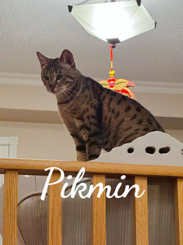 Pikmin是一位很粘人的男生,他会在你刚到家时冲到门口喵喵叫的迎接你,并且用他的身体蹭你的裤脚表达思念。Pikmin是一个爱吃美食的吃货,热爱一切猫咪零食,并且有很强壮的肠胃,不常拉肚子。他可以适应有犬家庭,给他多一点时间和小狗接触,他也很乐意和小狗成为朋友的。