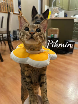 Pikmin is an affectionate boy. He’ll quickly show his trust to you. He’s a foodie and fond of cat treat. With enough time and patience, Pikmin is also able to get along well with dogs.