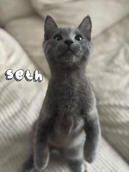 Seth 是一隻非常親人、完全不怕生的小貓,和其他貓咪都能相處得很融洽,也能快速適應新環境。平時他是個小話癆,總是喜歡喵喵叫,好像在和人類聊天。只有當他窩在你身邊、享受你的撫摸時,才會安靜下來,露出滿足的小表情。
