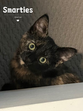 I am a beautiful little tortoiseshell cat, a little shy and it takes a while for me to adapt to the new environment. Although I am still a little afraid of people, you can touch me when I eat, and I will immediately purr and raise my tail for you to touch. I am an arrogant and introverted kitten.